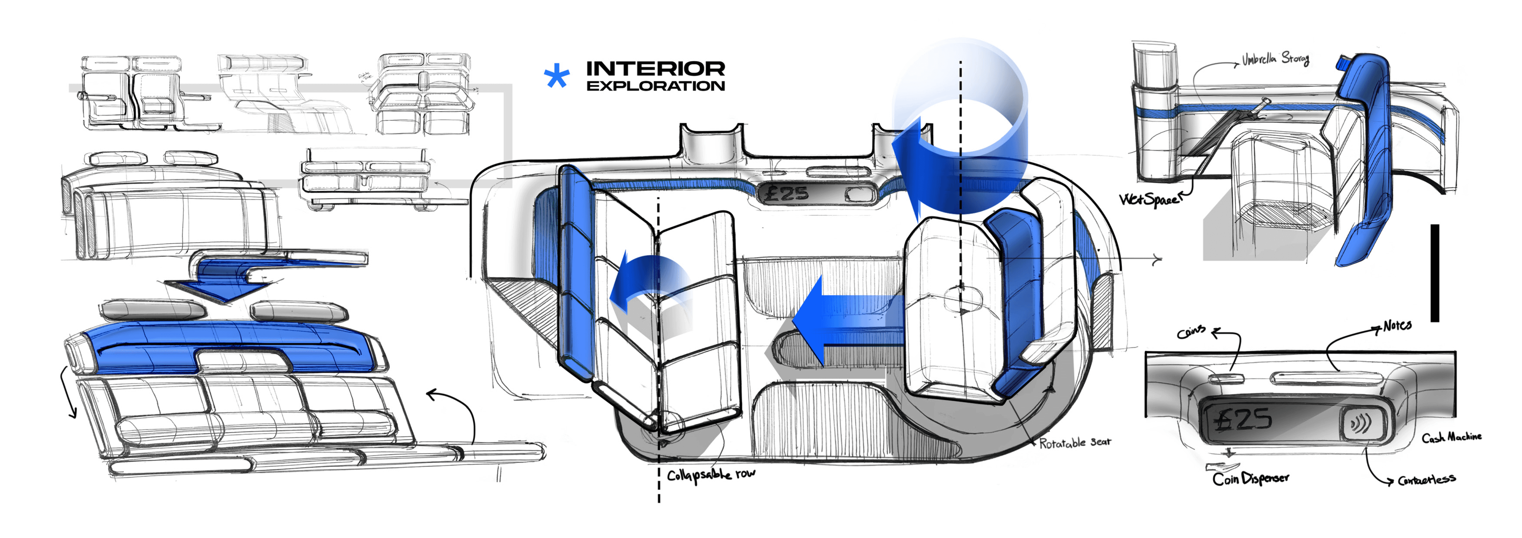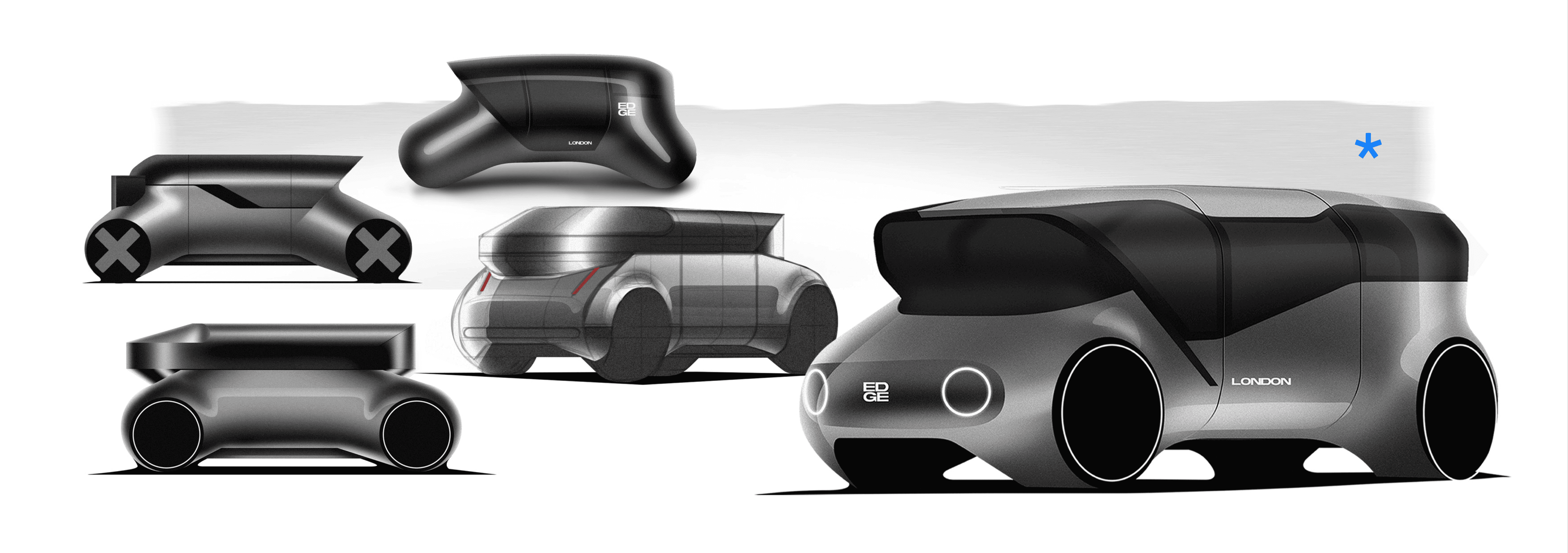 In crafting the exterior of the EDGE taxi, our aim was clear: to maintain the timeless allure of London's iconic black cabs while signaling a bold leap into the future. By incorporating unique codes and futuristic accents, we've created a vehicle that not only pays homage to its heritage but also communicates its advanced features to passersby.